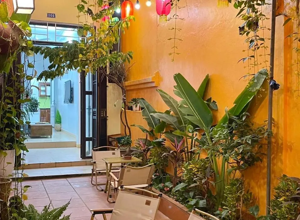 The Little Ha Noi Apartment features views of the garden and includes a balcony, a terrace, and a living room with an air conditioner.
